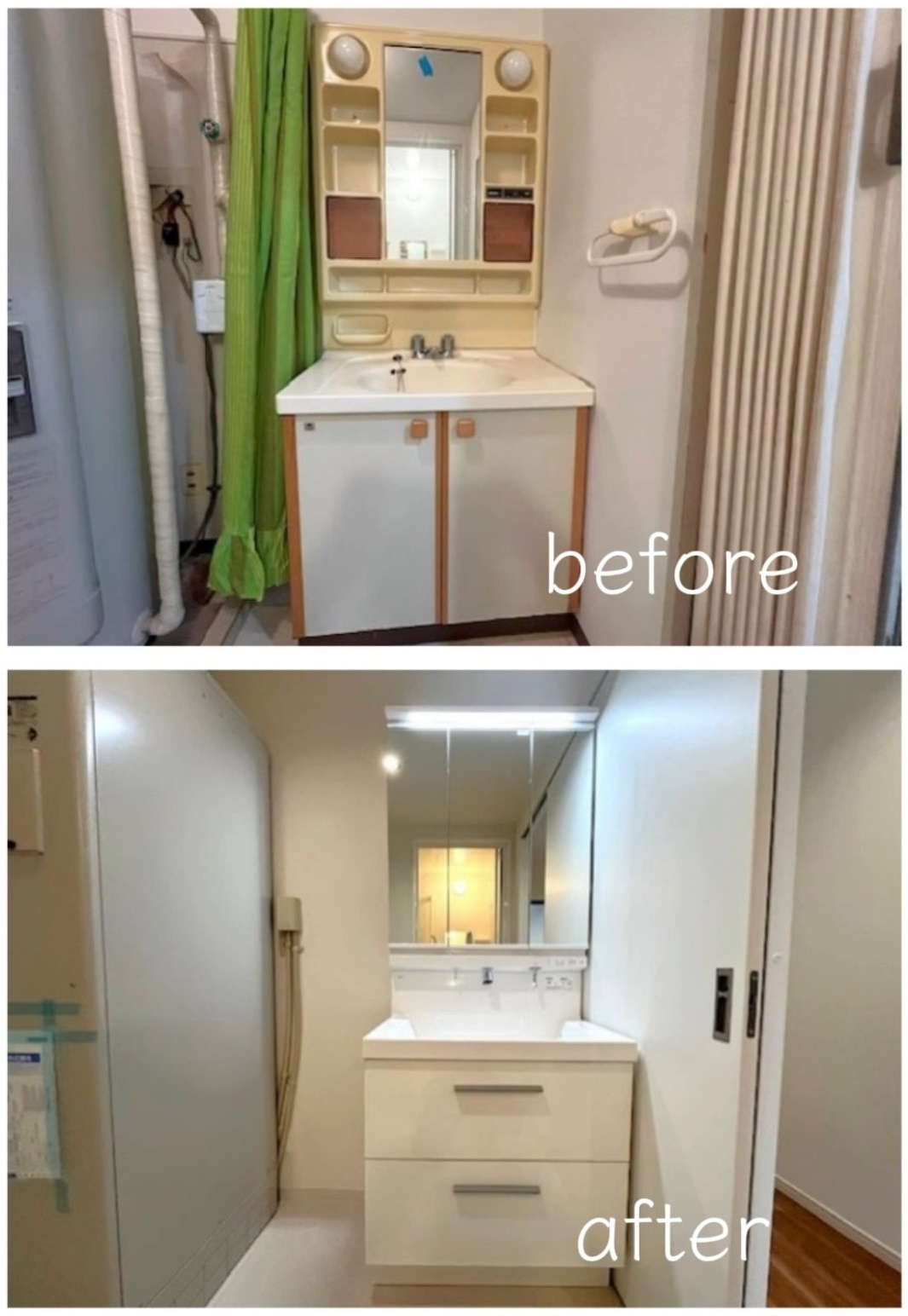 後ろの髪形もチェックできる三面鏡付き洗面化粧台に♪