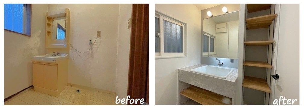 洗面室のレイアウトを変更することで、収納スペースを増やしたり、洗面台の位置を使いやすい場所に移したりすることができます。これにより、朝の支度やお風呂上がりの準備がスムーズになります♪