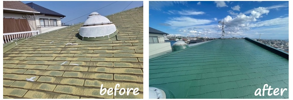 屋根は紫外線・雨・風に常にさらされています。塗装によって「保護膜」を作ることで、雨水の侵入を防ぐ表面の劣化(ひび割れ、色あせ)を抑えるといった効果が得られます。