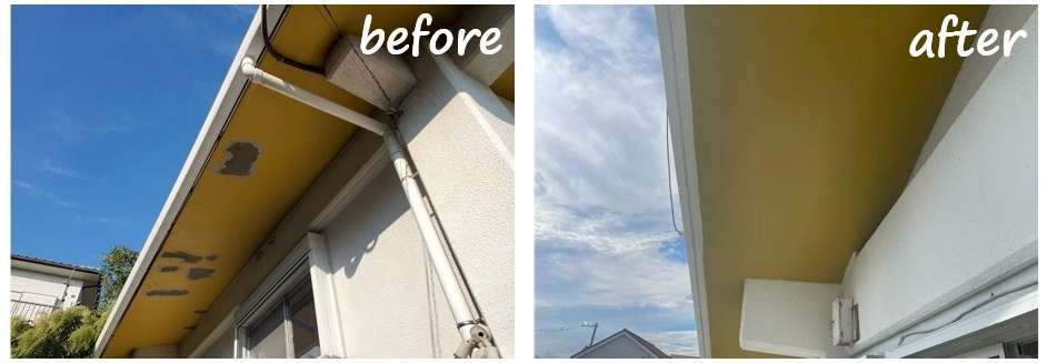 色あせと補修跡が目立っていた屋根をしっかり塗装し、表面が均一に整い、見違えるほど引締まった仕上がりに!