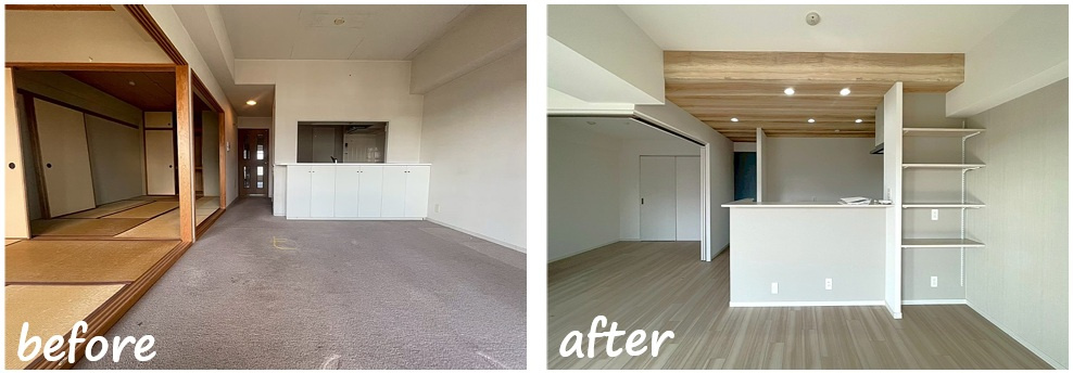 和室と仕切られていた空間を一体化し、明るく開放的なリビングダイニングへ✨